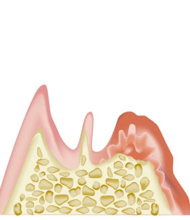 歯茎の出血が始まり、細菌の増殖により持続的な炎症によって歯を支える骨が溶かされることで歯周ポケットが形成されます。出血以外に痛みなどの症状はありません。